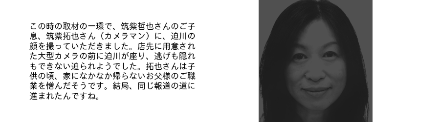 迫「森山(大道)さんに教えてあげたら、さっそくミスチルをここに連れてて、撮ってたよ」