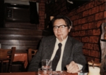 「ベルク20周年記念パーティー」の看板は、当日の朝、ベルクの「おいしいコーヒーをどうぞ」の看板の字でもおなじみの山下利年次さんが作って下さいました。その看板に、私が思いつきで井野利也(ベルク創設者)の写真を貼り付けたら、結構、パーティーに「参加」してました。中野の「カルマ」のマスターが、この写真はどこで撮った?としきりに聞くので、30年近く前に中野のブロードウェイの4Fに「アンニュイ」というお店があったのをご存知ですか?とうかがうと、ご存知でした。さすが、中野の生き字引!そこでまだ小学生か中学生になりたての愛染恭介が向かいの席に座った父親を撮ったのがこの写真ですとご説明しました。利也が亡くなる直前の頃です。井野冬二(ノラカバ作者)の娘(つまり利也の孫になる)が、お父さんの写真と間違えたそうですが、そのくらいノラカバにそっくり。というか、ノラカバが似てきた。