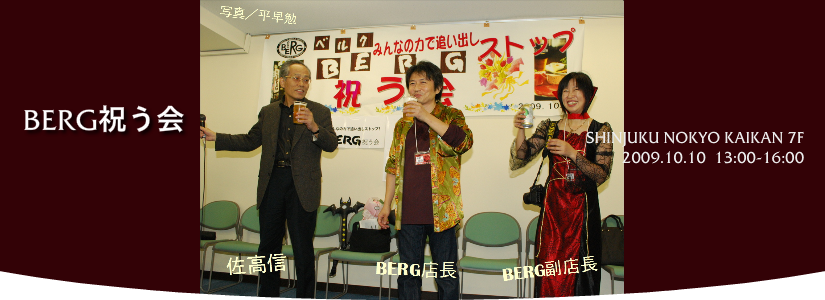 10月10日、東京・新宿農協会館で「みんなの力で追い出しストップ!ベルク祝う会」が開かれ、200名が集まった。JR東日本・ルミネの金儲け主義と対極のベルクは、自然の食材を安くおいしく提供し、楽しく自由な店である。この日は、そんなベルクにふさわしい異業種交流の大パーティとなった。
