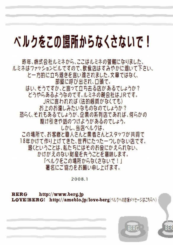 疑問は二つあって、一つは他の場所でやれば?というもの。もう一つは、なぜルミネはベルクを追い出そうとするのか?家賃の問題?(スルドい‥)というものです。