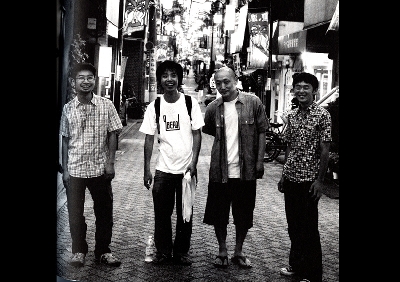迫川と私を取材する3人の姿を迫川が撮り返しています。↓